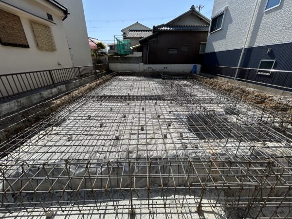 基礎工事の様子になります。両隣がお家に囲まれておりますが、日当たりも良好です。