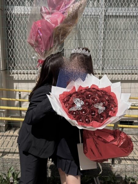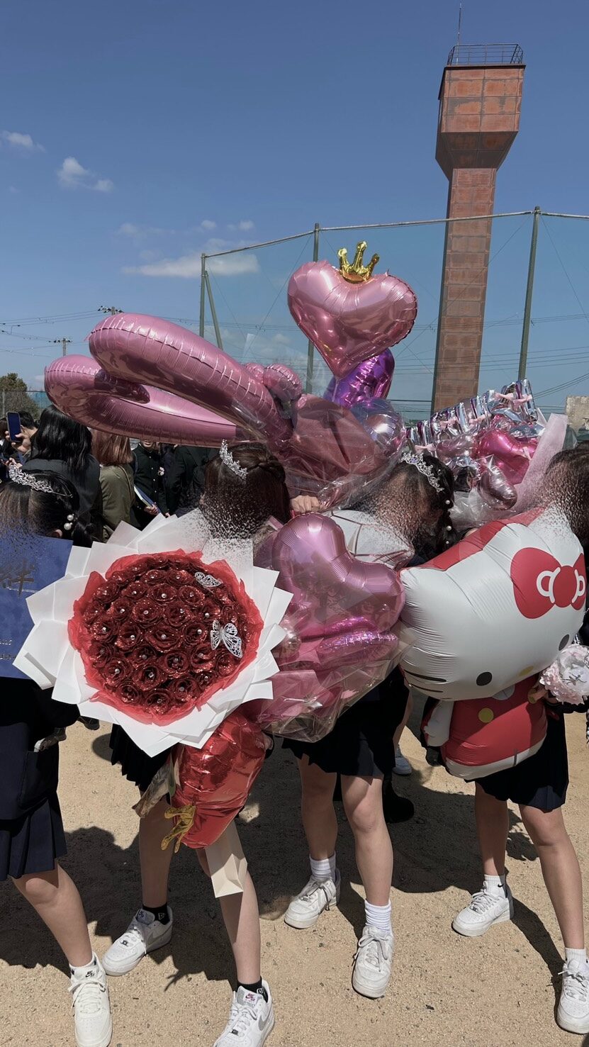今の卒業式ってすごくて男女問わずみーんな巨大な風船花束を持ってました(笑)