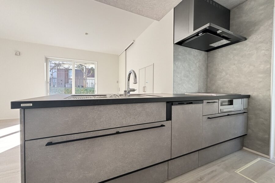 ●ワイドシンク、洗浄機一体型水栓、深型食洗機、IHクッキングヒーター搭載のシステムキッチン